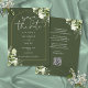Denna eleganta olivgröna botaniska grönska blomster guldvalv save-the-date inbjudan kan anpassas med din information i chic modern typografi med din bröllopswebbplats QR-kod och detaljer på baksidan. Designad av Thisisnotme