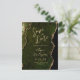 Denna eleganta moderna postkort för att spara datumet har en olivgrön akvarell-agatbakgrund med falskt guldglitter. Anpassa enkelt den guldfärgade moderna skriften och det sans-serif-teckensnittet på framsidan. På baksidan kan du redigera den anpassningsbara returadressen och ange din bröllopswebbadress för att generera en QR-kod som dina gäster kan skanna för att lära sig mer om ditt kommande evenemang.