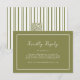 Trendigt olivgrönt bröllops online-svarskort för en modern elegant bröllopsfest. Denna chic minimalistiska infogning speglar tyst lyx och modern botanisk estetik, perfekt för den stilmedvetna moderna bruden som planerar ett bröllop på vingård, trädgård eller kust. Kombinera med olivfärgade kuvertfoder, gulddetaljer och randiga bröllopspapper för en polerad redaktionell bröllopssvit.