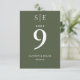 Olivgrön Monogram Bröllops Bordnummer Inbjudningar