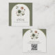 Olivgrönt rosa och guldblommande bröllopsdetaljer fyrkantigt visitkort