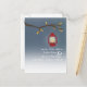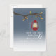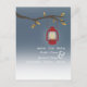En höst utomhus kväll bröllop rädda datum vykort med en vildmark / camping tema med en illustration av en röd oljelampa som hänger från en trädtak med orange och bruna blad. Anpassa texten med din information.