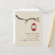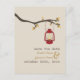 Ett vykort för utomhusbruk faller hösten bröllop spara datum med ett vildmarks-/campingtema med en illustration av en röd oljelampa som hänger från träd gren med orange och brunt löv. Anpassa texten med din information.