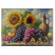 Bär ditt kök med den här Oljemålningen för grafik och solblommor. Den här tavlan har ett levande liv som fortfarande består av lush-druvor och strålande solrosor och kombinerar konstnärlig elegans med vardagsfunktioner. Perfekt för matlagning eller som charmering till biet.