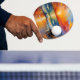 Oljemålning av orangens solnedgång över havet pingisracket