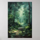 Lush Grönt Forest Oljemålning Natature Poster, Oljemålning Poster med en Lush Grönt Forest.