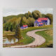 Scenskt pastoralt utseende av dalen, dammen och byggnad vid Chandler Backe Winery, Defiance, MO från Daniel Fishback på en oljemålning i luft.
