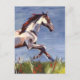 oljemålning för grått-hästgalloping. Hästgalloping mot blå himmel.