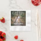 Lägg till en elegant som avslutar beröring till din bröllopsmottagning, party-dekorera med anpassningsbar foto "Cheers to Happily Now After" pappra blöjor. Bild och all text på den här mallen är enkla att anpassa för ett bröllop, en förlovningsfest, ett pars möhippa, en årsdag eller ett annat tillfälle. Den moderna, minimalistiska, vita typografidesignen har parets namn och bröllop överlagrade datum med ett foto som du väljer. Dessa snyggtar och unika cocktailservetter tillför en chic till firande på speciell dag. Grattisar till bruden och brudgummen!