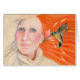 Den härliga slå olyckskorpen får ett besök från henne den favorit- hummingbirden. En en klockas slag noterar kortet för något tillfälle. Original- pastellfärgad målning av Laura J. Holman ©2011.