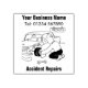 Olycksreparationer av gummi frimärke med en illustration av tecknaden plus ditt företags namn och telefonnummer