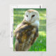 Ett fotografiskt vykort från en stilig Barn Uggla som mottagarna gärna tar emot. Några intressanta fakta om arten finns på baksidan av kortet.