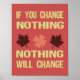 Om man inte ändrar någonting kommer ingenting att förändras - motiveringscitat, röd typografi med löv.