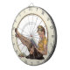 Roligt vintage pinup art Dart Board har en snygg pinup som läser när hon läser om sitt lager av ben uppåt.