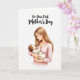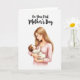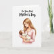 Det här kortet visar en försiktig illustration av en kvinna som håller en sovande baby nära sig, och fångar en tyst samhörighet i en enkel och luftig miljö ❤️. Hennes långa blonda hår faller i mjuka vågor runt hennes lugna ansikte medan hon tittar ner med en öm och kärleksfull blick. Babyn vilar tryggt mot henne, liten och fridfull, och tillför en söt känsla av närhet till scenen. Hon bär en ljusrosa topp som ger värme åt bilden, tillsammans med små guldfärgade örhängen som fångar en smula ljus. Bakgrunden är enfärgat vit, vilket håller all uppmärksamhet riktad mot deras ansikten och hur deras kroppar lutar mot varandra. Nära toppen syns frasen “On Your First Mother's Day” i ett flödande, kursivt typsnitt i en mörk ton som sticker ut tydligt. Bokstäverna är centrerade ovanför figurerna med gott om