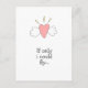 NewParkLane - Söt vykort för att önska god hälsa, med en söt korallrosa bevingad hjärta och citat: 'Om jag ändå kunde flyga...!' i en rolig typsnittsstil. Baksidan säger: 'Skulle jag vara precis där hos dig. Skickar dig den största långdistanskramen ändå. Hoppas det hjälper lite...’.