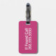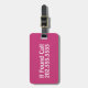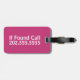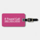 Den här magentan bagagetaggen säger "Om ett samtal hittas" och det finns ett ställe för att ange ditt mobila nummer.