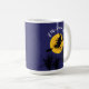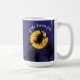 En lekfull Halloween-mugg med en häxa som flyger över ett glanande fullt måne med frasen "Om bommen passar". Perfekt för att tillsätta humor till kaffe- eller tetiden.