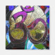 En magnet-replik av Om Wheel-glaspanelen av Jessica Joy Myers.