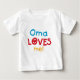 Oma Kärlek Me T-tröjor, kort, klistermärken, kokocksväskor och annat med färgstark röd färg, gult och blå text och hjärtdesign. De här Oma Kärlek-kläderna och presentplaggen får Oma att le!