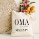 En modern minimalistisk väska för att fira en chic mormor, den här rena, minimala toten innehåller "Oma" eller ditt val av smeknamn i svart smycke. Anpassa med året som hon blev en mormor under elegantens romerska siffror för en chic.