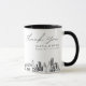 Modern Omaha-skyline-kaffet mugg föredrar gåva med "tack"-skript. I designen visas en fantastisk skiss med möjlighet att anpassa namn och exakt var du befinner dig. Ange Zazzle-designen verktyg för ytterligare anpassningar.