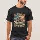 Här är en annan rustik vintage-stil t-shirt-design med en ensam varg som står på en bergig topp med en åldras amerikansk flagga och frasen "Otamed Spirit" 🐺 🇺 ✨ 🇸.
