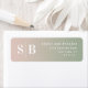 Elegant Ombre Grönt & Rosa Bröllop Kuvert Returetiketter. Den här moderna bröllop-designen eller någon annan händelseadressetikett är enkel och elegant med en chic färg-övertoningstoning och trendig typsnitt. Visas i den nya paletten Bröllop Färg. Dessutom har du ett enkelt monogram på den Lämnat sidan. Samlingen Ombre Minimal Bröllop kommer säkert att göra bröllop minnesvärt och vackert! För att se mer, sök efter Chic Paperies samlingar i bröllop 2022 för att se alla de trendmönster som finns och bröllop färg för detta år.