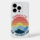 Omfamna äventyret, retro-design för vandringsälskare har en bergsillustration och en skinande sol med lite cool text.