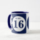 OMG att du är 16 monogram namn-flotta och vit Mugg