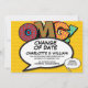 Anpassa med era namn och detaljer för att tillkännage ändringen av datum för er speciella händelse. Serietidnings Pop Art-tema modern, rolig retrodesign, perfekt för bröllop, bröllopsdusch, baby shower, dop, förlovningsfirande, årsfirande, examen, födelsedagsfirande och andra speciella händelser under hela året! En cool, trendig och rolig design som sätter BAM! ZAP! POW! i din dag. Designad av ComicBookPop© på www.zazzle.com/comicbookpop*