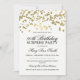 Den eleganta 90:e överrrakningfödelsedagsfest inbjudandesignen med guld omkullkastar motiv för konfettiar (DEN INTE är ETT VERKLIGT OMKULLKASTAR), på vitbakgrund, anpassningsbarnamn och daterar och extra text.