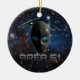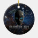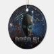 Område 51 design för konspirationsteorister, tre UFO och ett främmande huvud med glödande ögon och en rymdbakgrund.