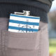 Omringa och ankra blått- och vitrandflaskan fickplunta