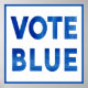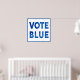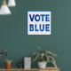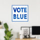 Uppmuntra människor att rösta för demokrater i val genom att visa en politisk poster med ord "OMRÖSTNING BLUE" i ett fet blått vattenfärgsteckensnitt på en vit bakgrund för en modern typografi med blå gräns. Du kan ändra storleka på utskriften i sidlisten. Om du vill visa designen Rösta blått på andra objekt klickar du på länken för "Rocklawn Arts"-samlingen nedan.