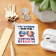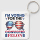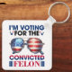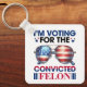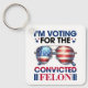 Den här humoristiska nyckelkedjan har textbilden "Jag röstar för den dömda felonen" med amerikanska solglasögon av flagga. Perfekt för att visa stöd för er favoritkandidat till presidentposten.