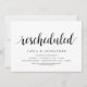 Ändra datumkort. Det här är bröllopsinbjudan Omschemalagd (uppskjuten / uppskov) kort (Ny plan), med modern minimal enkel ren design med svart typsnitt. Det är det perfekta sättet att tillkännage ändringen av evenemanget till dina vänner och familj.