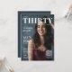 Inspirerad av framsidan på en chic födelsedagsmagasin ger denna vänd trettio fotobildsfödelsedagsinbjudan din fest en stilren och modern känsla. Den rena layouten och porträttfunktionen gör den perfekt för inbjudningar till 30-årsfest eller någon milstolpe födelsedagsfest. En QR-kod lägger till en rolig touch för inbjudningar till vuxnas födelsedagsfirande med RSVP. Anpassa foto och evenemangsinformation för att göra den unikt din idag.