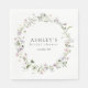 Dekorera din bröllopsdusch med dessa vackra servetter med en akvarellkrans av lila blommor, lavendel och grönska. Anpassa med din text. Matchande produkter finns tillgängliga i Adore Paper Co Zazzle-butiken.