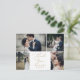 Den här känsliga guldfärgade fyrfotos-mallen för tack-kort är perfekt för ett modernt bröllop. Den romantiska minimalistiska designen har vacker och elegant champagne-gul typografi på vit bakgrund med ett rent och enkelt uttryck. Personifiera baksidan av vykortet med era namn, er returadress och ett tack-meddelande. Alternativt kan ni lämna tack-meddelande-sektionen tom för att handskriva en personlig hälsning på varje kort efter att de har anlänt.