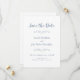 Eleganta, utsökta save the date-kort i vackert dammigt blått och vitt är klassiska, formella och tidlösa. En romantisk design utan ramar låter dig enkelt välja pappersform för ditt förlovningsmeddelande. Två dekorativa krullor som var och en innehåller ett hjärta omsluter varsamt namnen på bruden och brudgummen. För bästa resultat, hoppa över rader och använd versaler som i provet.