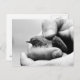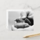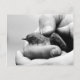 Ömt svartvitt foto av en fågel som hålls av mänskliga händer