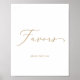 Denna ömtåliga guld kalligrafi bröllagspresent skylt är perfekt för ett modernt bröllop. Den romantiska minimalistiska designen har vacker och elegant champagne-gul typsnitt på vit bakgrund med en ren och enkel look.