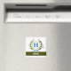 En ömtålig krans av murgröna med ett blått randigt band ligger över en fräsch vit bakgrund. Bröllopstemat design har monogrammet "H" i blått. Magneten kan anpassas med valfritt namn över det gröna bandet. Designtips: Använd versaler för namnet med det visade teckensnittet.