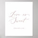 Ömtålig roséguld Kärlek är sött bröllopsskylt Poster
