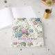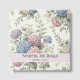 En bröllopsgästbok med ömtåliga hortensiablommor i nyanser av dammig ros, lila och blå.
