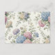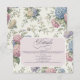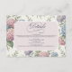 Ett bröllopskort med ömtåliga hydrangeablommor i nyanser av dammig ros, lila och blå.