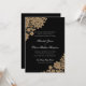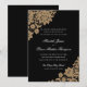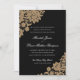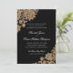 Ömtat hörn av spets i svart och guld med bröllopss inbjudningar