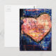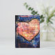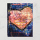 On Blue a Pink Heart Mixed Media Collage Vykort
