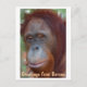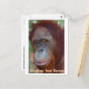 Säg hej med ett portokort för orangutans fotografi från Borneo, världens tredje största ö och hem till många unika och utrotningshotade arter. Konstnären är frivillig med orangutans rädding och rehabilitering. Det här fotografiet visar en stilig man som heter Omry. Han stals från mor när han var baby och skadades i skallen och ögon på processaa. Hittills har han bara delvis visioner och lider av kramper. Konstnären skänker vinster på försäljningen av denna bild för att stödja Orangutans vårdcentrals bevarandearbete.